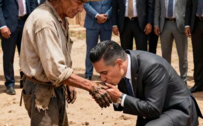 Er kam nicht mit dem Auto, sondern mit einem alten Traktor. Er trug ein verwaschenes Hemd, einen Palmenhut und schlammverkrustete Stiefel.